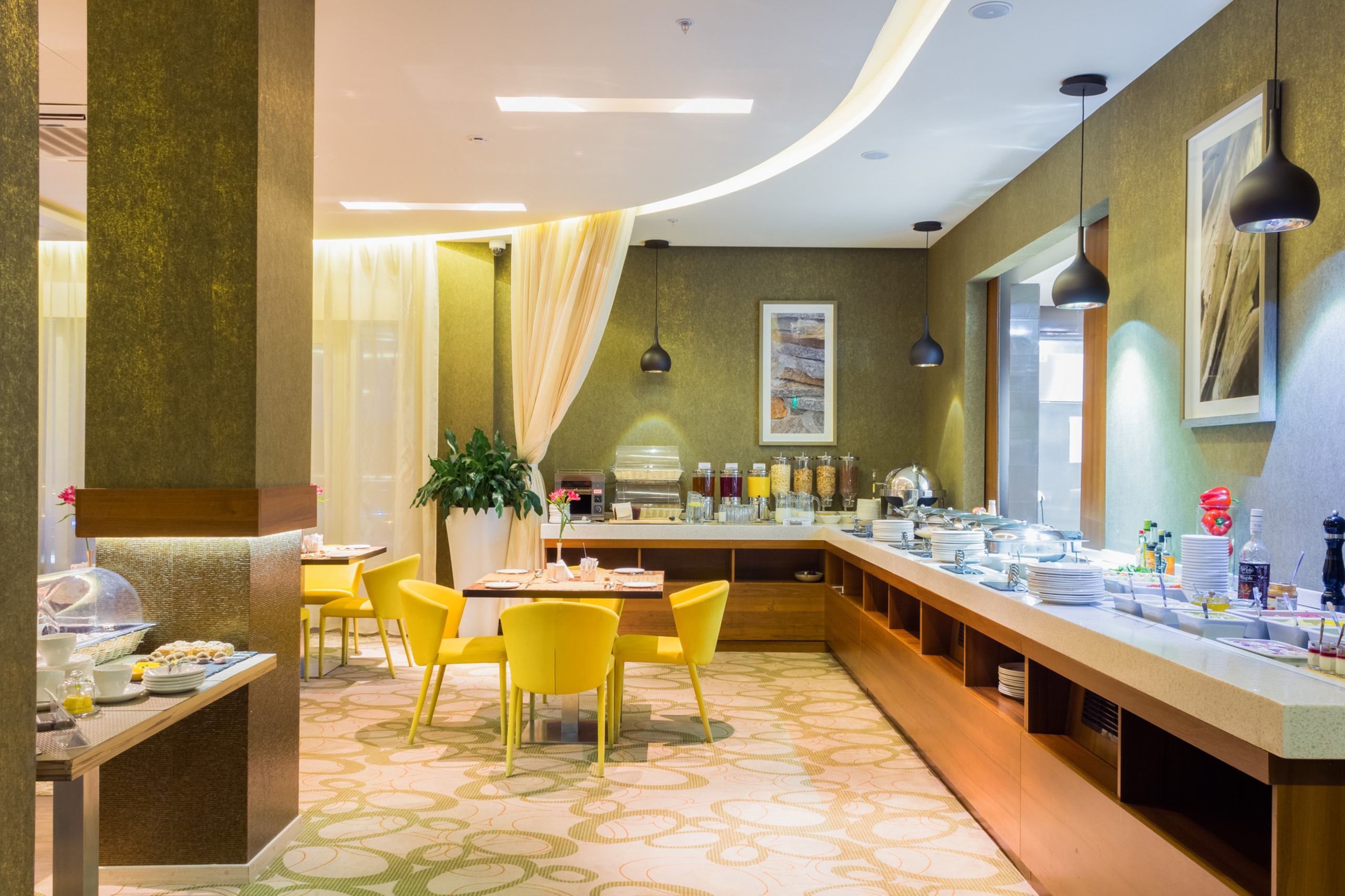 Завтраки «шведский стол» подаются ежедневно в ресторане с 06:00 до 11:00 в будни и до 12:00 по выходным. Вы можете выбрать из множества блюд, представленных на столах: от классических тостов с джемом и медом до омлетов с различными начинками и фруктовых салатов.